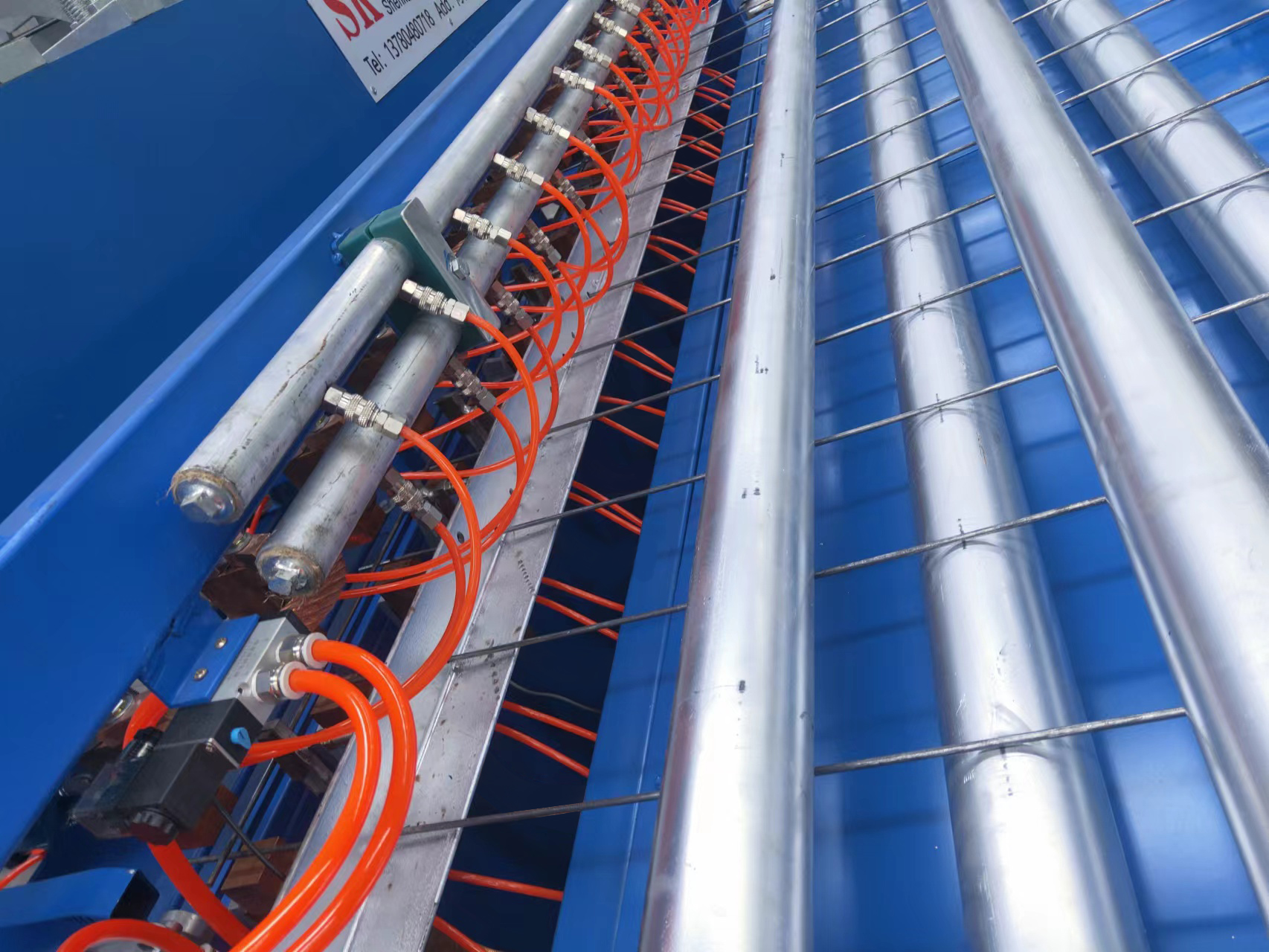 产品摘要: 钢丝网焊接机,网宽1200mm/1600mm,2100mm,2500mm,线径:3mm-5mm,焊接速度:60-80次/分钟,纵线为盘料,横线为断料。